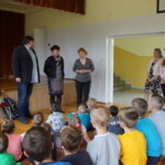 16 maja 2019 roku w Szkole Podstawowej w Mokrem miały miejsce warsztaty literackie, które gościnnie dla najmłodszych uczniów poprowadził Pan Jarosław Górski. Organizatorem spotkania była Biblioteka Publiczna Gminy Zamość. Tematem przewodnim warsztatów Pan Jarosław uczynił „zabawy dźwiękonaśladowcze”, dobierając do tej lekcji myślę najefektywniejszą metodę, jaką jest nauka poprzez zabawę. Wyrazy dźwiękonaśladowcze (tzw. onomatopeje) w sposób naturalny potrafią wyrazić otaczające nas zjawiska dźwiękowe. Poprzez swoją naturalność umożliwiają dziecku w prosty sposób porozumiewanie się z otoczeniem. Są pierwszymi, naturalnymi słowami dziecka. W języku polskim istnieje ogromne bogactwo tego rodzaju wyrazów, które ze względu na swoje walory, także artystyczne, w formie figury retorycznej chętnie wykorzystywane są przez autorów literatury dziecięcej. Właśnie zapoznanie się z utworami kliku najwybitniejszych polskich twórców tego gatunku, stało się punktem wyjścia do językowych zabaw. I tak z zaciekawieniem dzieci wysłuchały wierszy Juliana Tuwima, Jana Brzechwy, Danuty Wawiłow, Agnieszki Frączek oraz Igora Sikiryckiego. Tych kilka trafnych przykładów użycia onomatopei, pozwoliło najmłodszym słuchaczom lekcji prześledzić sposób zorganizowania warstwy dźwiękowej utworów, imitujących rozmaite pozajęzykowe zjawiska akustyczne. Po części wstępnej przyszedł czas na wspomniane zabawy dźwiękowe. W trakcie warsztatów uczniowie angażowali się w wiele oryginalnych zadaniach doskonalących nie tylko ich warsztat mowy, czy ćwiczących słuch akustyczny, ale także rozwijających wyobraźnię: dzieci wskazywały wyrazy dźwiękonaśladowcze, wystukiwały i wytupywały rytm powtarzanych strof, odgadywały rymy w wierszu, powtarzały fragmenty poezji zwracając przy tym szczególną uwagę na zawarte w tekście onomatopeje oraz ostatecznie wykorzystały zdobytą w trakcie zabaw wiedzę w praktycznych działaniach – tym razem samodzielne, jedynie pod czujnym okiem prowadzącego, komponowały własne rymowane teksty. Na zakończenie spotkania dzieci wysłuchały jeszcze fragmentu autorskiej książeczki samego prowadzącego, pt. „Pieśń o Sowie”. Patrząc na stopień zaangażowania uczestników zabaw, jestem przekonana, że Panu Jarosławowi, tym z pozoru błahym tematem, nie tylko udało się zaciekawić swoich słuchaczy, ale co więcej – być może zmotywować do dalszego odkrywania naszego języka, który kryje w sobie jeszcze niejedną niespodziankę „Wszak polszczyzna słynie z tego, że szumi i szeleści”.