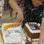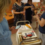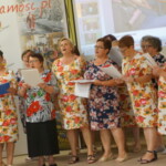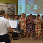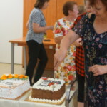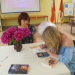 Pani Joanna zdradziła nam, że zamierza napisać jeszcze kilka takich książek, ale co będzie ich tematem to na razie tajemnica, tego dowiemy po ich wydaniu. Już teraz, czekamy z niecierpliwością na kolejną pasjonującą powieść, i czy to będzie powieść historyczna, kryminalna, czy jeszcze z innego gatunku literackiego, będziemy czekać z zapartym tchem. Na zakończenie świętowania jubileuszu, wystąpił dla nas nowo powstały zespół śpiewaczy Klubu Seniora Kalinka ze Skaraszowa. Seniorzy oprócz śpiewu uraczyli nas wyśmienitym i przepysznym tortem, udekorowanym bukietem róż.