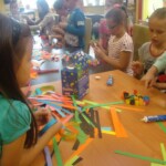 Wakacje dobiegły końca, a wraz z nimi zajęcia organizowane przez naszą bibliotekę, które odbywały się we wszystkie letnie wtorki, środy i czwartki w okresie od 4 lipca do 22 sierpnia (jednak praktycznie do rozpoczęcia roku szkolnego dzieci aktywnie korzystały z takich atrakcji, jak: gry planszowe, bezpłatny dostęp do Internetu, tablety, komputery, gry na Xboksie, kolorowanki, a część wstępowała po prostu na chwilę rozmowy). Tegoroczny cykl wakacyjnych spotkań przebiegał pod hasłem „Z flisakami z biegiem Wisły” (nawiązującym do hasła przewodniego roku 2017 – uchwalonego przez Sejm Rzeczpospolitej Polskiej „Rokiem Rzeki Wisły”) i jak sama nazwa wskazuje, każdego dnia „wyruszaliśmy w podróż wzdłuż brzegów rzeki”. Teraz czas na krótkie podsumowanie naszych „wędrówek”. Zacznę od tego, że zorganizowane zajęcia pozwoliły dzieciom spędzić wolne chwile w kreatywny, a przy tym przyjemny i wesoły sposób. O tym, że wakacje w bibliotece mogą być udane świadczy dodatkowo wysoka frekwencja i aktywność uczestników (w tym roku osiągnęliśmy nowy rekord pod względem liczby osób uczestniczących w akcji „Wakacje z Biblioteką” – odwiedziło nas 73 dzieci; w sumie przez całe dwa miesiące w zabawach wzięło udział 573 osoby). Przeszkodą nie była ani liczebność grupy, ani jej zróżnicowanie wiekowe. Ostatecznie daliśmy radę podarować trochę radości każdemu uczestnikowi i po raz kolejny udowodniliśmy, że u nas z pewnością nie jest cicho i nudno! Jak zwykle BAWILIŚMY SIĘ GŁOŚNO, ale co najważniejsze było WESOŁO! (pozostałych naszych czytelników uspokoję – proszę się nie martwić, poza okresem wakacji i ferii jest spokojnie i śmiało można korzystać z księgozbioru na miejscu; a i w trakcie zajęć znajdzie się przytulny kącik :)). I tak podczas wspólnych spotkań dzieci skorzystały z różnorodnych atrakcji, oto niektóre z nich: zdobienie kubeczków metodą decoupage, projektowanie koszulek markerami i farbkami do tkanin oraz projektowanie biżuterii, malowanie na szkle, gipsowe odlewy, papierowe origami, warsztaty quilingowe, recyklingowe fantazje, malowanie dłońmi, zajęcia kulinarne (w końcu wędrując wzdłuż Wisły naprawdę można zgłodnieć), głośne czytanie wybranych legend i bajek, relaksacyjne zabawy z masą plastyczną (typu: piasek kinetyczny, glutki, wodne kuleczki orbez, zabawy z modeliną), zajęcia ruchowe i integracyjne. Bardzo ciekawe warsztaty zdobienia ramek metodą sosspesso, a następnie z transferu na drewnie przeprowadziła również Pani Agata Piwko. Dla uczestników było to nowe doświadczenie, przyznam pracochłonne, ale mimo wszystko warte zachodu! Efekty wakacyjnych prac dzieci są zachwycające! (wszystkich ciekawskich zapraszam do obejrzenia fotorelacji zamieszczonej na fanpage’u biblioteki). Wielkim wydarzeniem okazały się również zajęcia z Panią Zofią Przytułą, w trakcie których dzieci dzielnie pomagały w przygotowaniach scenografii do wieńczącego cały cykl letnich zajęć przedstawienia. Przez cały okres wakacji dzieci uczestniczyły w warsztatach teatralnych Pani Marii, niezawodnie cieszących się ogromnym zainteresowaniem najmłodszych czytelników (Pani Maria Duławska jest równocześnie autorką scenariusza do wakacyjnego przedstawienia, pt. „Z flisakami brzegiem Wisły”). Te i inne jeszcze formy pracy z dziećmi sprawiły, że każdy mógł znaleźć coś dla siebie, a o nudzie nie było mowy.