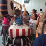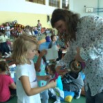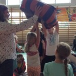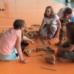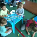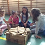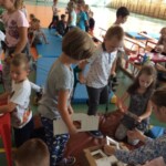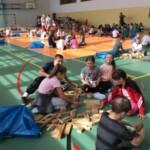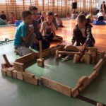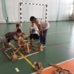 – budowanie Krainy Skarbów Żeromskiego z drewnianych klocków MuBaBaO – kolejna kreatywna zabawa pobudzająca abstrakcyjne myślenie dzieci. Przy ich użyciu warsztatowicze najpierw układali budowle inspirowane myśleniem charakterystycznym dla dzieł Stefana Żeromskiego, a następnie tworzyli fascynujące opowieści, które nie jednego dorosłego zaskoczyłyby skalą wyobraźni. Punktem wyjścia tworzonych historyjek stała się postawa wrażliwości i empatii na otaczający nas świat; z kolei temat przewodni – skarby, ale nie te materialne lecz duchowe, jak miłość czy przyjaźń. Poprzez nowe spojrzenie na pióro Stefana Żeromskiego, Pan Michał umożliwił dzieciom wgląd do innego świata – świata, w którym największą wartością jest człowiek. Każda stworzona przez dzieci budowla niosła ze sobą nowe spojrzenie na ten motyw. Z resztą nie ma co w tym miejscu się rozpisywać, zapraszam do obejrzenia krótkich relacji w formie utrwalonych tabletem zdjęć i nagrań video (te ostatnie dostępne na fanpage-u biblioteki)!