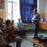 5 czerwca w Ramach Dyskusyjnego Klubu Książki, odbyło się jeszcze jedno spotkanie autorskie z panem Markiem dla dorosłych czytelników, czyli dla członków Klubu Seniora ze Skaraszowa. W trakcie którego wygłosił prelekcję pt. „Kamień smoczy – historia pewnej mistyfikacji medycznej.” Historia kamienia sięga XV w. i był on do połowy XVIII w. najsłynniejszym panaceum medycznym w Europie. Pisarz w ciekawy sposób opowiadał, że w dawnych czasach uczeni przyrodnicy wierzyli, że smok, mimo, że uważano go za wcielenie zła, posiadał właściwości lecznicze. Doktor Sikorski swoją opowieść zilustrował licznymi przykładami z malarstwa średniowiecznego i renesansowego, a także rycinami z wieków późniejszych. Obecnie kamień smoczy znajduje się w zbiorach Natur-Museum w Lucernie i swego czasu należał do najbardziej popularnych eksponatów muzealnych. W 2006 roku przebadano metodami naukowo-technicznymi ten kamień i stwierdzono, że jest to pomalowana gliniana kula, ale posiadająca specyficzne radioaktywne właściwości, które sugerują, że chodzi tu o jakiś związek z meteorytem.
