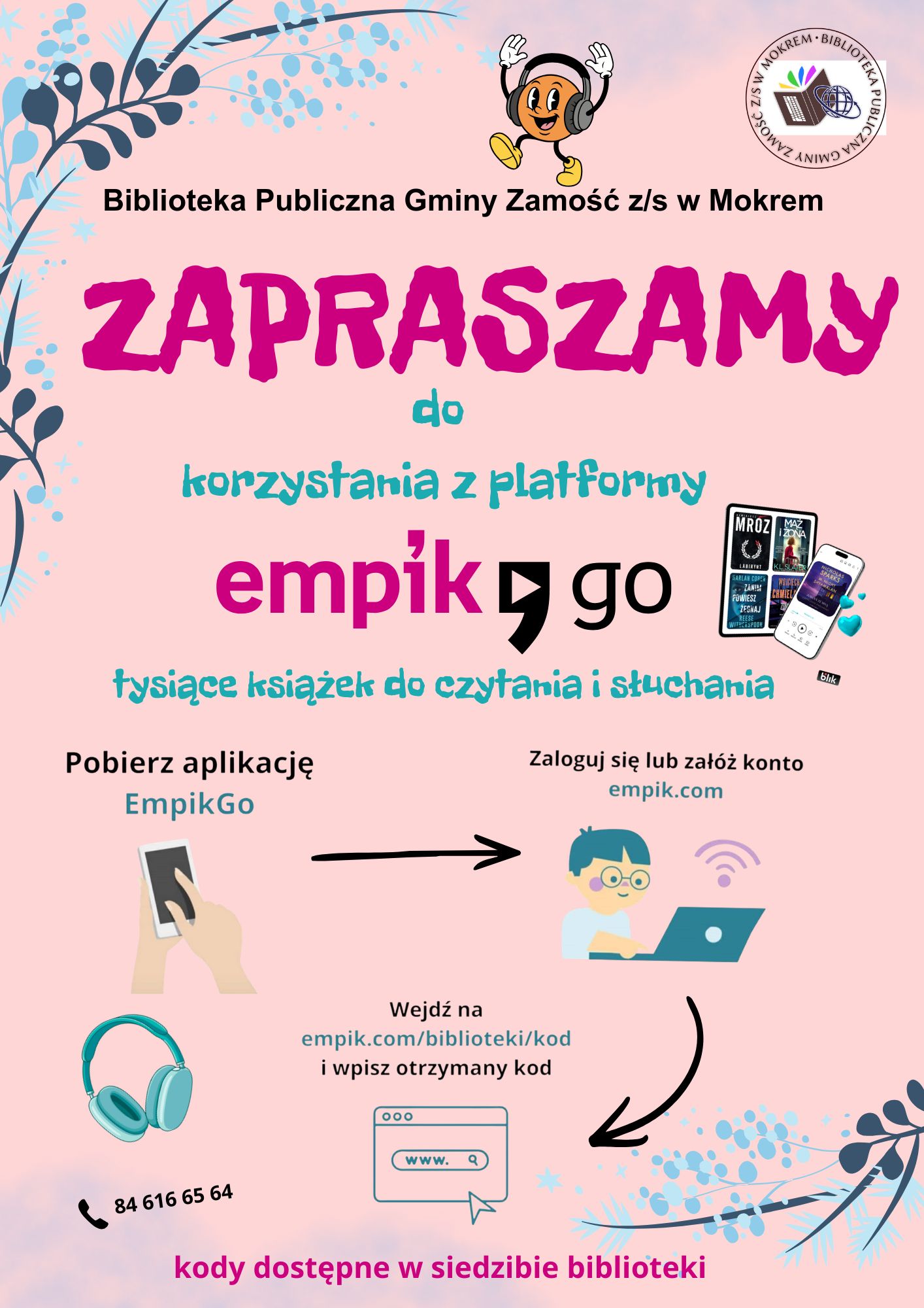 Biblioteka Publiczna Gminy Zamość zaprasza do pobierania bezpłatnych kodów Empik Go dostępnych na stronie biblioteki.