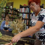 To już niestety koniec wakacji. Dla pocieszenia i tym razem dla dorosłego grona naszych czytelników, Biblioteka Publiczna Gminy Zamość z/s w Mokrem, w dniu 30 sierpnia zorganizowała warsztaty pod hasłem „BUKIETY Z NASZYCH OGRODÓW”, które gościnnie poprowadziła Pani Teresa Rypulak. Pani Teresa już po raz kolejny zgodziła się podzielić swoją pasją i zamiłowaniem do twórczych prac (dlatego bez dwóch zdań mogę powiedzieć o Pani: „Kobieta z artystyczną duszą”). Wcześniej mieliśmy okazję nauczyć się techniki komponowania cukierkowych bukietów, tym razem udało się podpatrzeć, jak powstają kompozycje kwiatowe z suszonych i żywych roślin. Efekty warsztatów, to: nowe umiejętności, dużo uśmiechów i biblioteka pełna kwiatów!