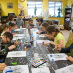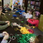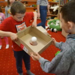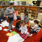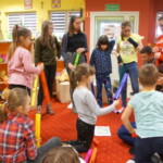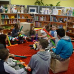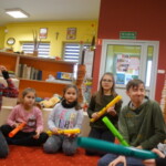 . Coroczne sporządzanie takiego kodeksu nie poszło w las! Nieodłącznym też elementem naszych zimowych spotkań w bibliotece, jest książka. Tradycyjnie zatem podtrzymywaliśmy zwyczaj rozpoczynania każdego spotkania, od odczytania przygotowanego tematycznie tekstu – tym razem były to opowiadania z książeczki Włodzimierza Dulemby „Cztery Pory Baśni”. A dalej … to już tylko ZABAWY – plastyczne oraz te na rozładowanie zbędnej energii: kartki na szczęście ze słonikiem, bransoletki, prace z papierowej wikliny, ozdoby piankowe i styropianowe, walentynkowe decoupage, cudaczki na patyku, skarpetkowe skrzaty, pingwinkowe paczuszki, ruchome kolorowanki, origami, zimowe puzzle, mega kolorowanki, plastelinowe wyklejanki, muzyczne boomwhackers, kulkowe szaleństwo, zabawy na wyspie, zabawy w szukanego i chowanego … i co tylko … co udało nam się zdziałać w trakcie codziennych, trzygodzinnych zajęć w bibliotece