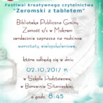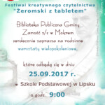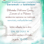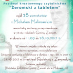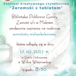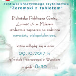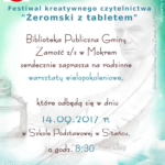 Biblioteka Publiczna Gminy Zamość z/s w Mokrem zaprasza wszystkie szkoły Gminy Zamość do udziału w warsztatach kreatywnego czytelnictwa. Pierwsze warsztaty dla dzieci i młodzieży rozpoczynamy 11 września 2017r., a warsztaty wielopokoleniowe 12 września 2017r. w Szkole Podstawowej w Płoskiem. Warsztaty poprowadzi Dyrektor i Założyciel Muzeum Bajek Baśni i Opowieści Michał Malinowski. Serdecznie zapraszam Elżbieta Stankiewicz Dyrektor BPGZ w Mokrem